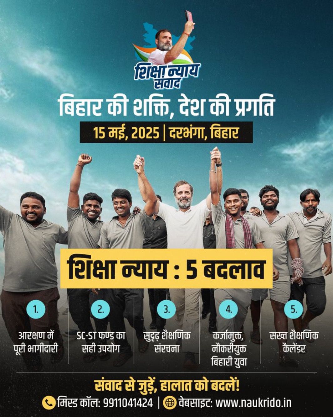 "शिक्षा न्याय संवाद कांग्रेस पार्टी की एक जन-आधारित ऐतिहासिक पहल है। यह युवाओं, छात्रों, महिलाओं और हर उस व्यक्ति के साथ जनसंवाद है जो बिहार में बदलाव चाहता है। शिक्षा, रोज़गार और सामाजिक न्याय जैसे सबसे ज़रूरी मुद्दों पर अब बात होगी — जिन्हें बरसों तक नजरअंदाज़ किया गया।"